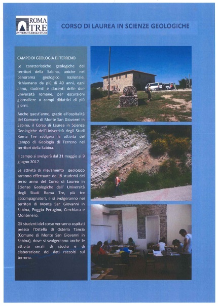 Home > News > Corso di Laurea in Scienze GeologicheCorso di Laurea in Scienze Geologiche30 Maggio 2017 Pec mail: amministrazione.comunemontesangiovanniinsabina@pec.it