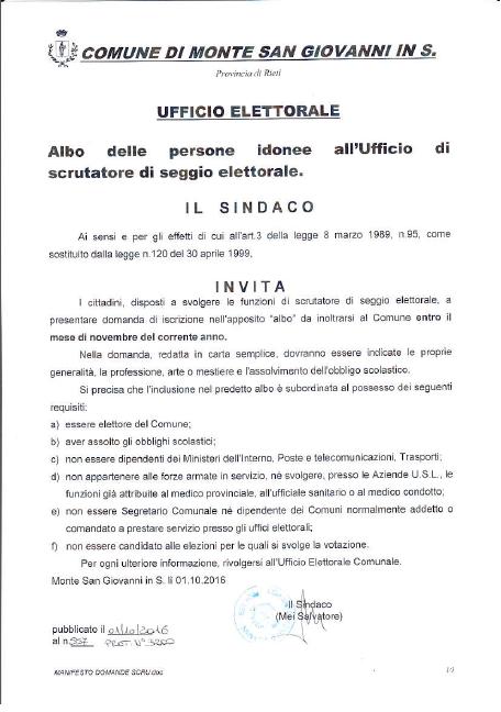 Home > News > Manifesto aggiornamento Albo ScrutatoriManifesto aggiornamento Albo Scrutatori3 Ottobre 2016 (clicca sull’immagine per aprire il file)