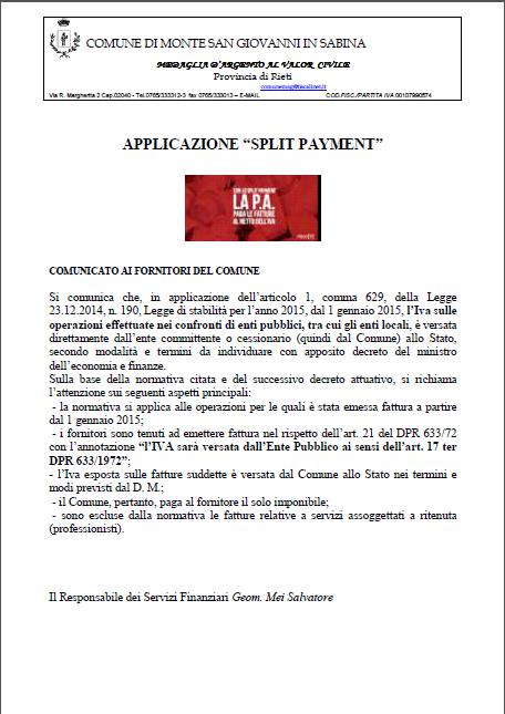 Home > News > COMUNICATO: APPLICAZIONE “SPLIT PAYMENT”COMUNICATO: APPLICAZIONE “SPLIT PAYMENT”16 Febbraio 2015 (clicca sull’immagine per aprire il file)